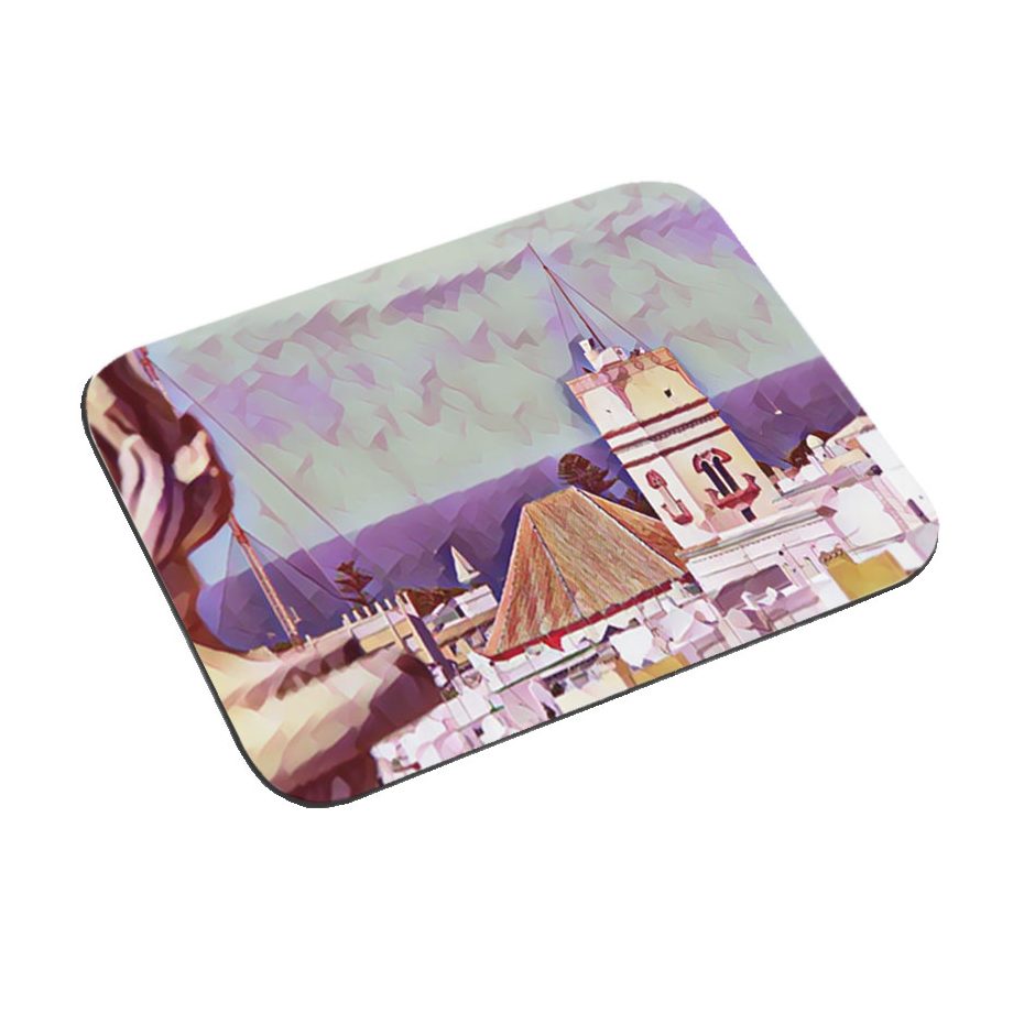 Alfombrilla de diseño rectangular en suave poliéster de vivos colores y con base antideslizante en silicona.